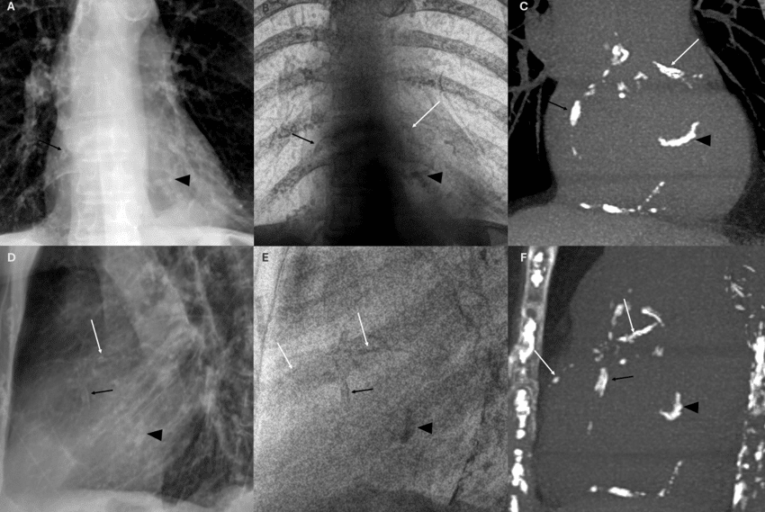 • Dual-energy chest X-ray showed improved performance over standard X-ray, with results approaching those of non-gated CT for detecting coronary calcification¹¹, ¹²